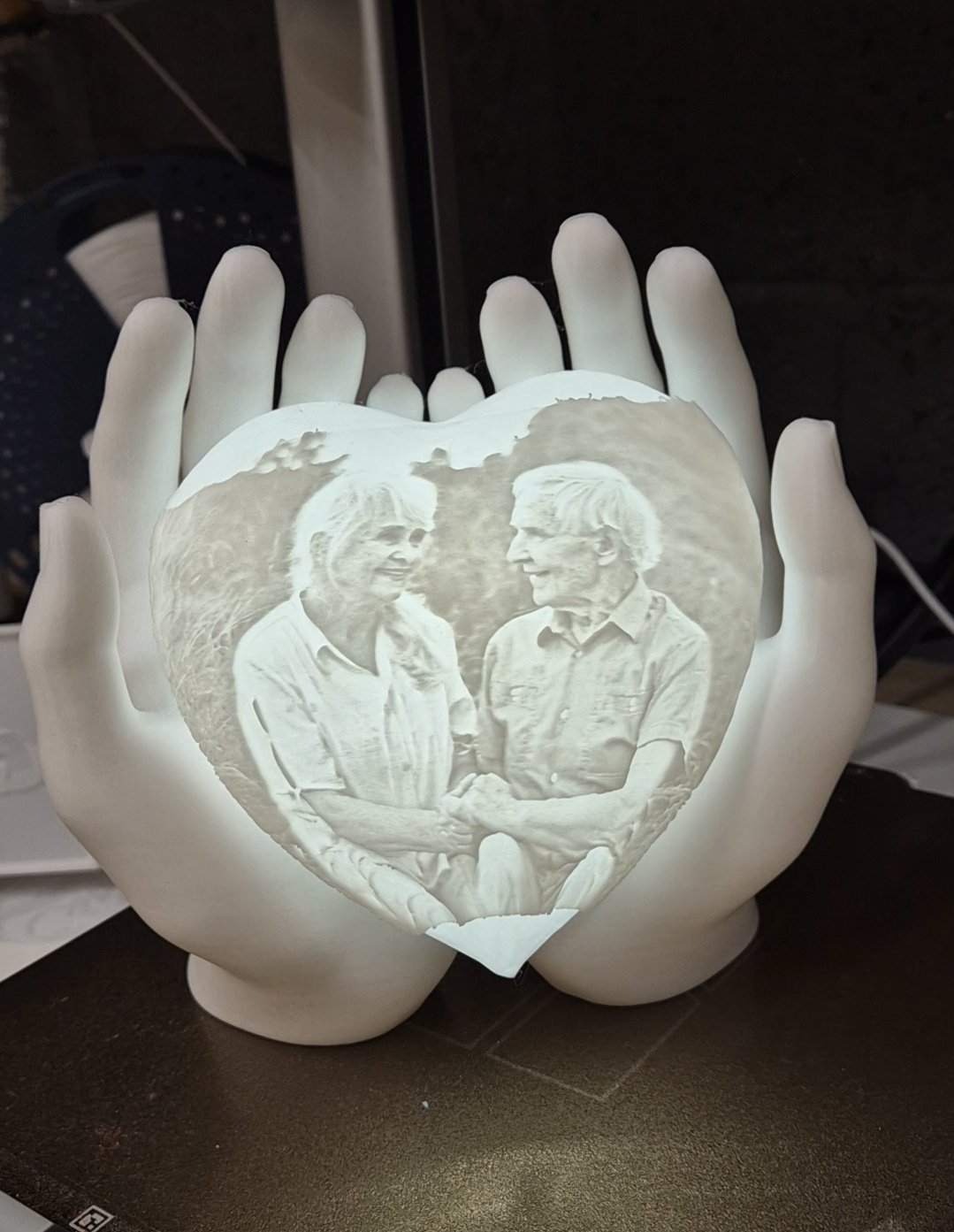 The heart illuminates a photograph uploaded by you, creating a glowing tribute to your special moments.